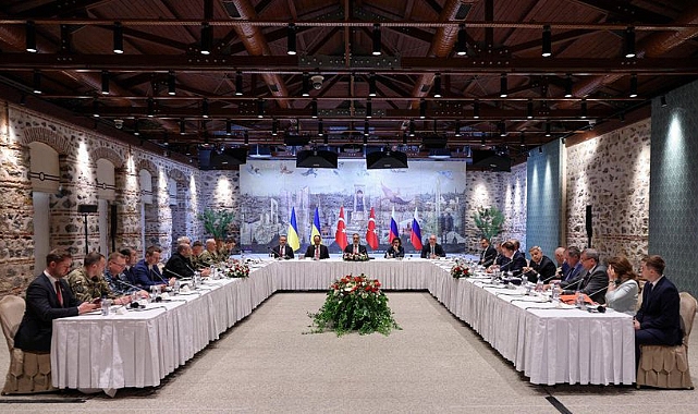 İstanbul’da Çırağan Sarayı’nda düzenlenen barış müzakereleri kapsamında Türkiye-Rusya-Ukrayna üçlü toplantısı başladı.
